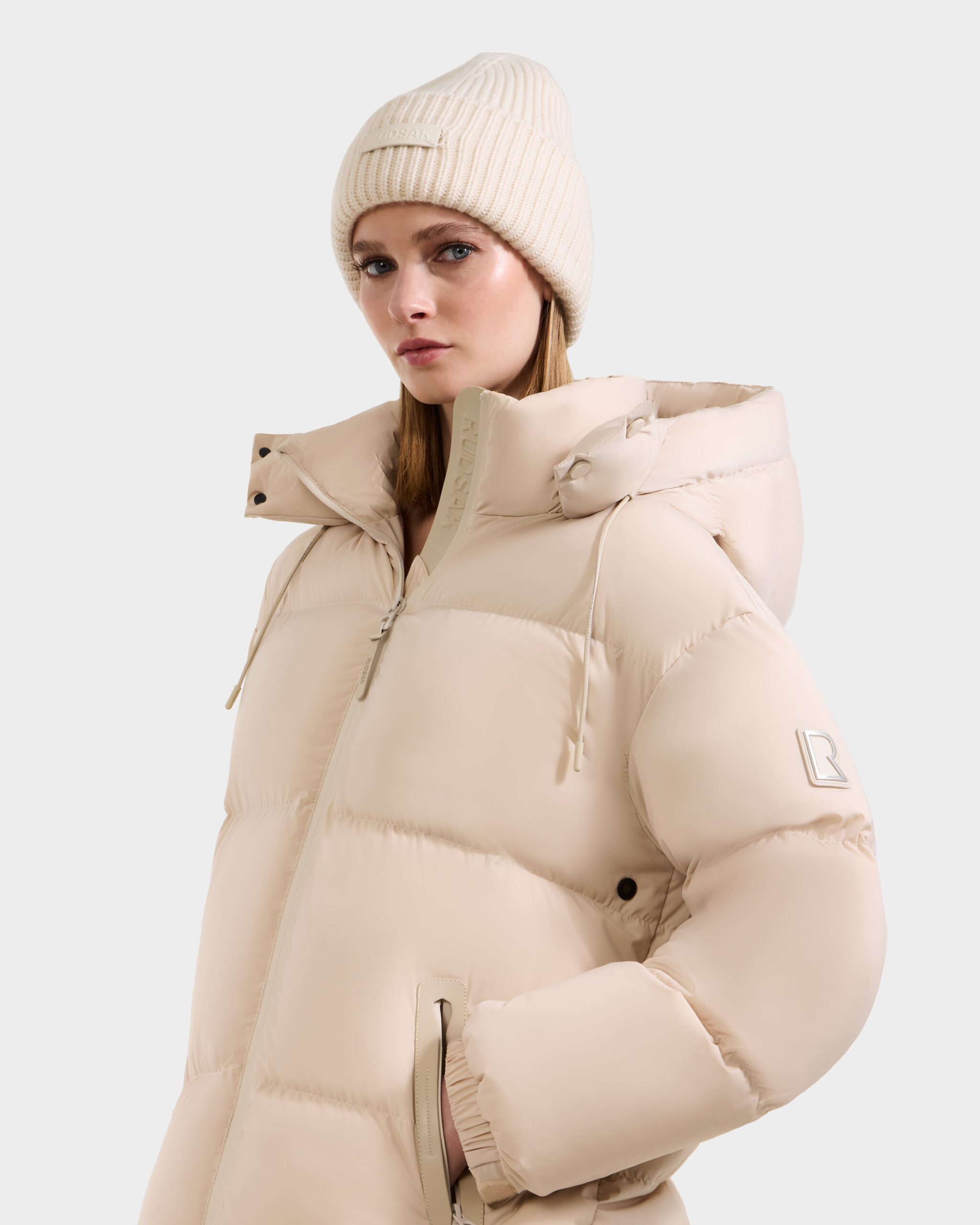 The KARLEE L by RUDSAK is a women’s long length down puffer designed for cold-weather wear. With extended coverage and high-loft insulation, it provides superior warmth without added bulk. A removable hood, protective high collar, and secure zippered pockets maximize function, while vegan leather trims deliver signature edge. Modern and versatile, this winter essential combines technical performance with sleek design—an everyday jacket built to keep up with urban pace and style.