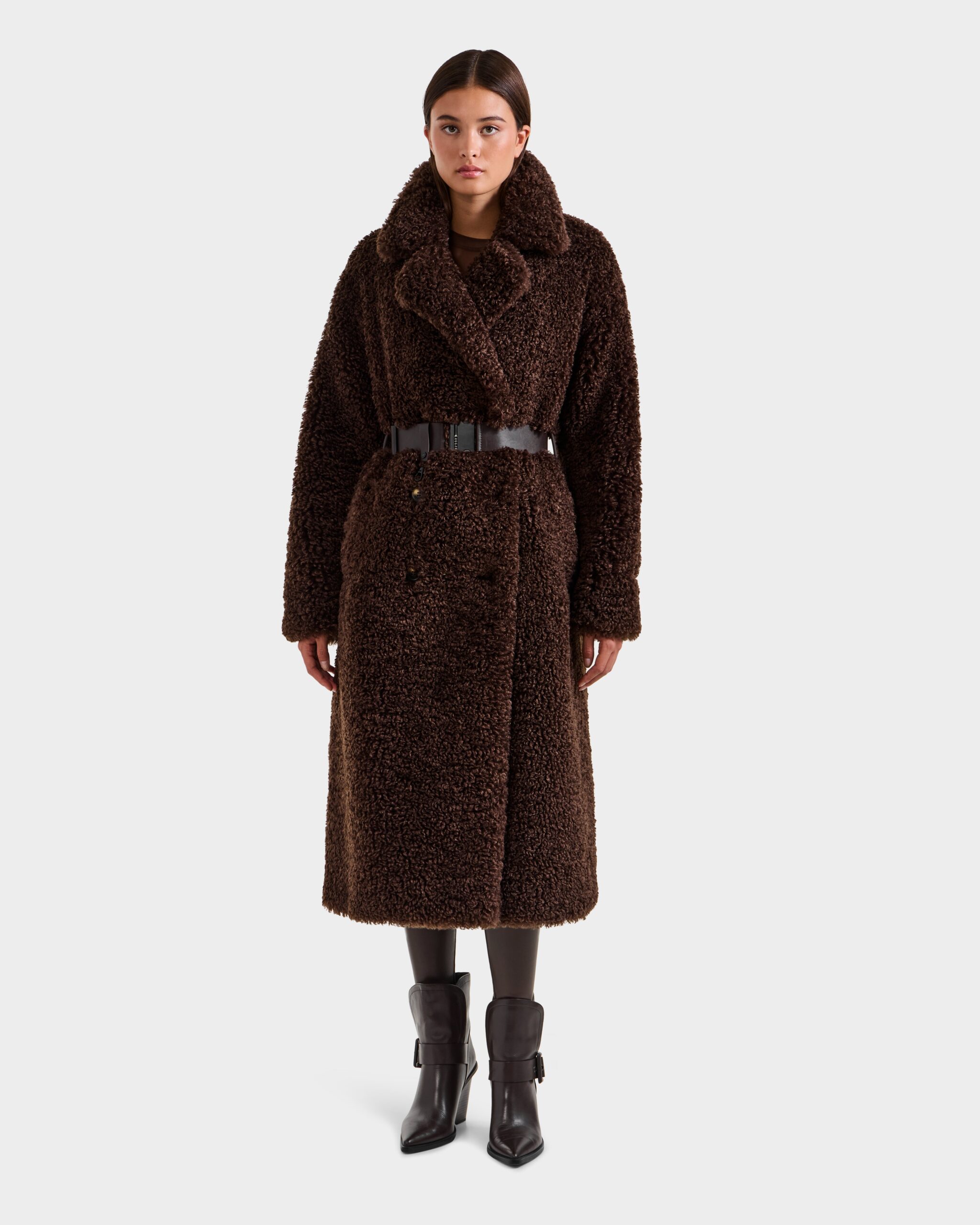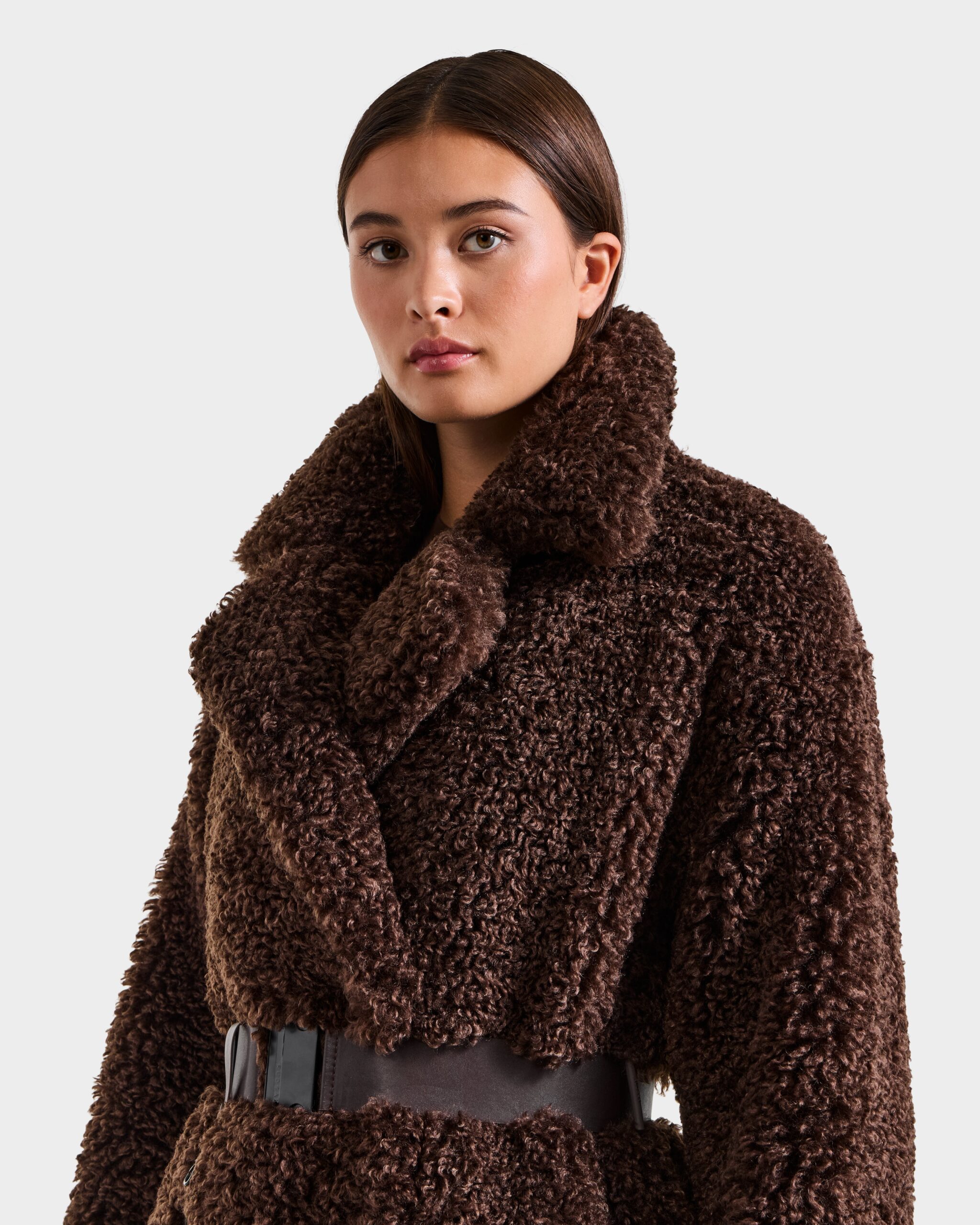 Introducing TINA by RUDSAK, a luxe combo of cozy warmth and style that will make a statement this season. This women’s faux fur teddy trench coat boasts a modern design with a contemporary twist. Its plush faux fur fabric envelopes you in coziness, while the removable hooded bib adds versatility to your look and a adjustable branded belt lets you cinch as desired. TINA combines fashion-forward sophistication with practicality, making it the perfect choice for chilly days and evenings. Elevate your wardrobe with this statement piece that exudes elegance and comfort.